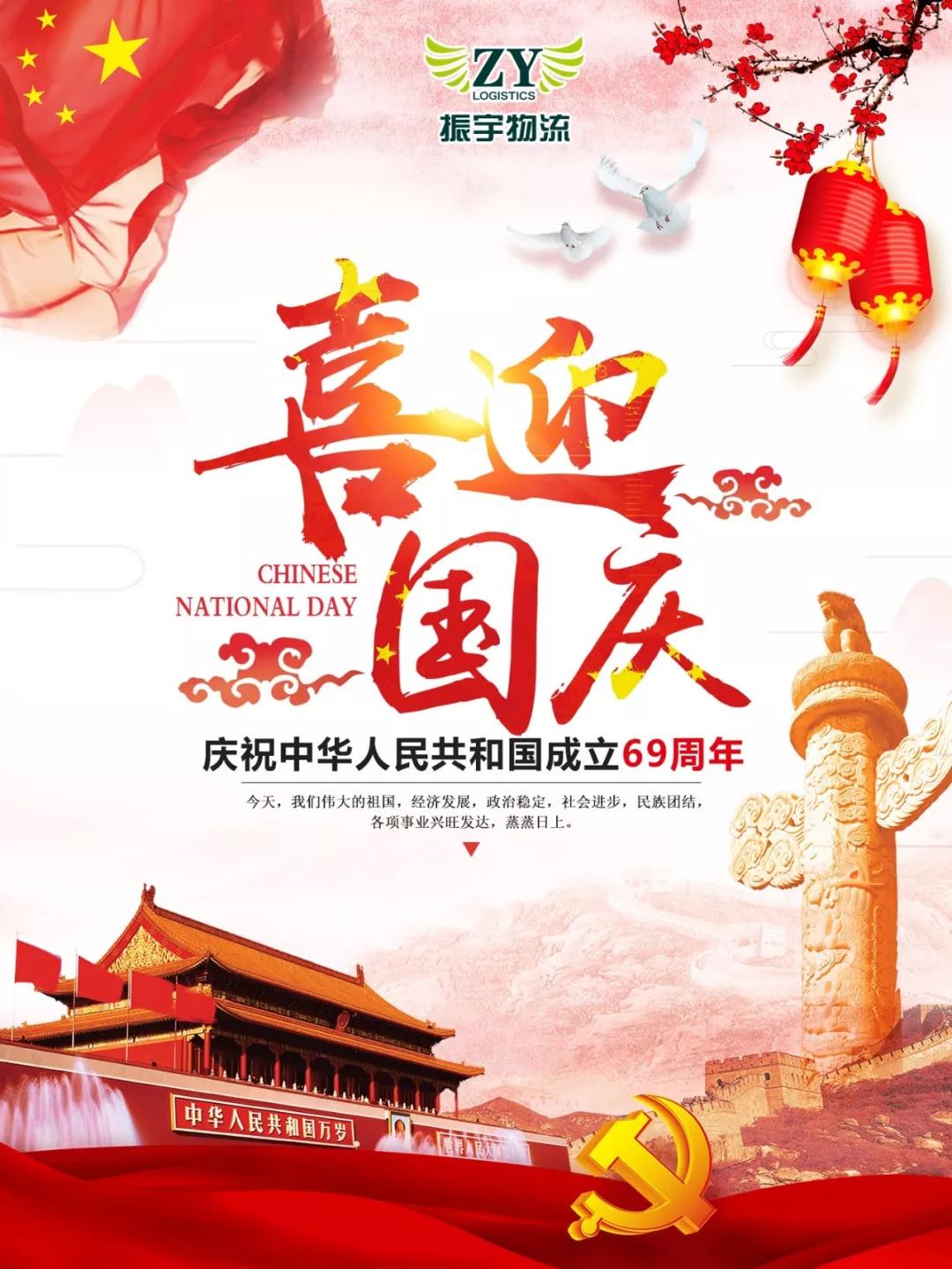 您好!感謝您們多年以來對振宇物流的鼎力支持,在2018國慶節(jié)即將來臨之際,振宇物流全體員工祝您國慶快樂!