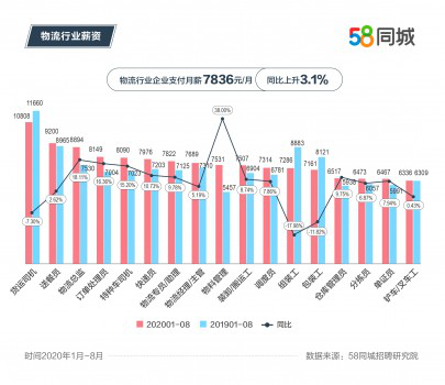 薪酬水平也是物流行業(yè)就業(yè)的重要指標(biāo),58同城招聘研究院數(shù)據(jù)顯示,今年1-8月,交通運輸、倉儲和郵政業(yè)支付月薪達(dá)到7836元,同比上升3.1%。典型職位中,貨運司機支付月薪第一,達(dá)到10808元;送餐員支付月薪排名第二,為9200元;物料管理支付月薪同比上升最快,增幅38%,月薪達(dá)到7531元??梢?,物流行業(yè)崗位薪資與崗位技術(shù)含量、市場需求、勞動強度密切相關(guān),技術(shù)含量高、市場需求大、勞動強度大的崗位收入更高。