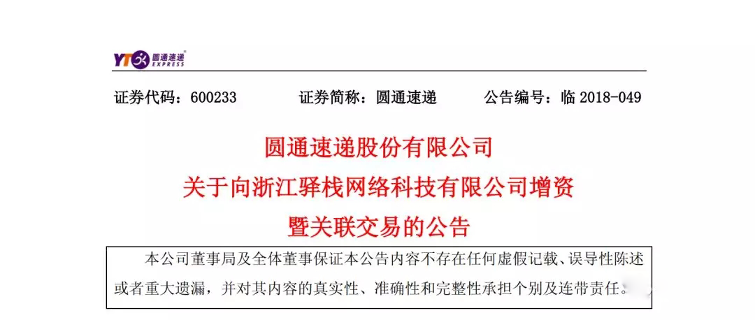 根據(jù)公告,圓通擬以自有資金4.5億元人民幣對(duì)浙江驛棧進(jìn)行增資,其中1575萬(wàn)元人民幣認(rèn)繳新增注冊(cè)資本,4.3425億元人民幣計(jì)入資本公積金。本次投資后,公司將持有浙江驛棧1575萬(wàn)元人民幣注冊(cè)資本,持股占增資完成后比例為6.28%。