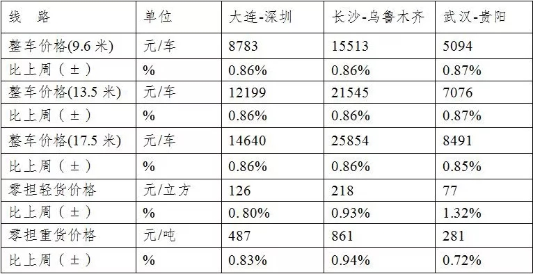表1 本周部分線路平均價(jià)格及環(huán)比情況對(duì)比