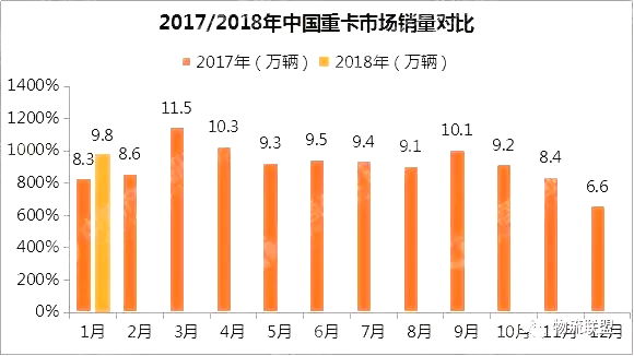據(jù)統(tǒng)計(jì)數(shù)據(jù)顯示,自2016年10月開(kāi)始延續(xù)至2017年10月,國(guó)內(nèi)重卡市場(chǎng)連續(xù)13個(gè)月爆發(fā)式增長(zhǎng)!2017年全年,國(guó)內(nèi)重型貨車產(chǎn)量為114.97萬(wàn)輛,同比增長(zhǎng)55.07%,銷量為111.69萬(wàn)輛,同比增長(zhǎng)52.38%。而18年1月重卡市場(chǎng)的“開(kāi)門紅”除了同環(huán)比雙雙增長(zhǎng)以外,同時(shí)也打破了去年1月銷量8.3萬(wàn)輛的紀(jì)錄。